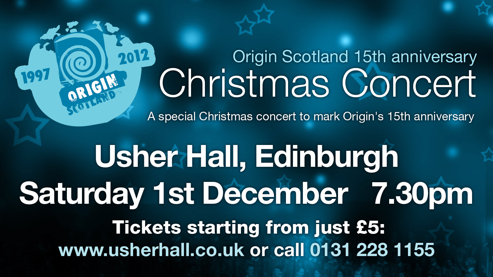 It's fifteen years since Origin Scotland was founded as a partnership between three Edinburgh churches. Since then we've grown into an independent ministry with many churches represented within the band, choir and orchestra as well as the tech crews and other volunteers.