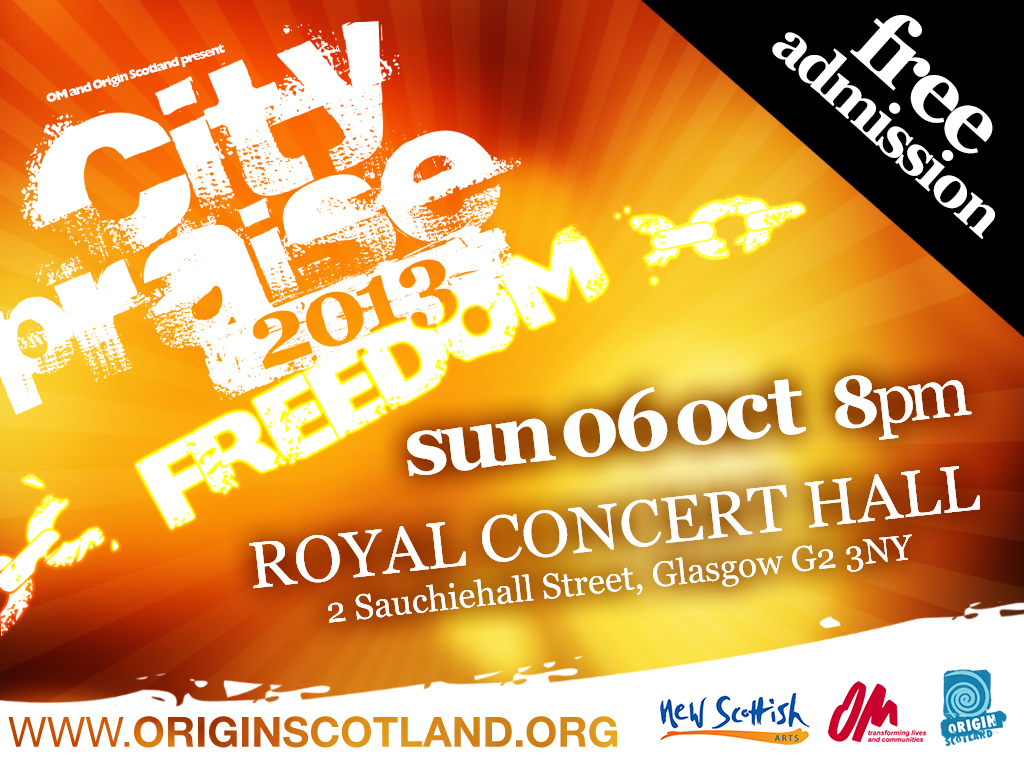 Join us for a fantastic concert of worship with the Exile Band and Orchestra, and the massed choirs of Origin Scotland and New Scottish Arts.