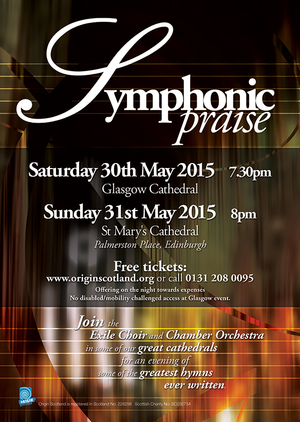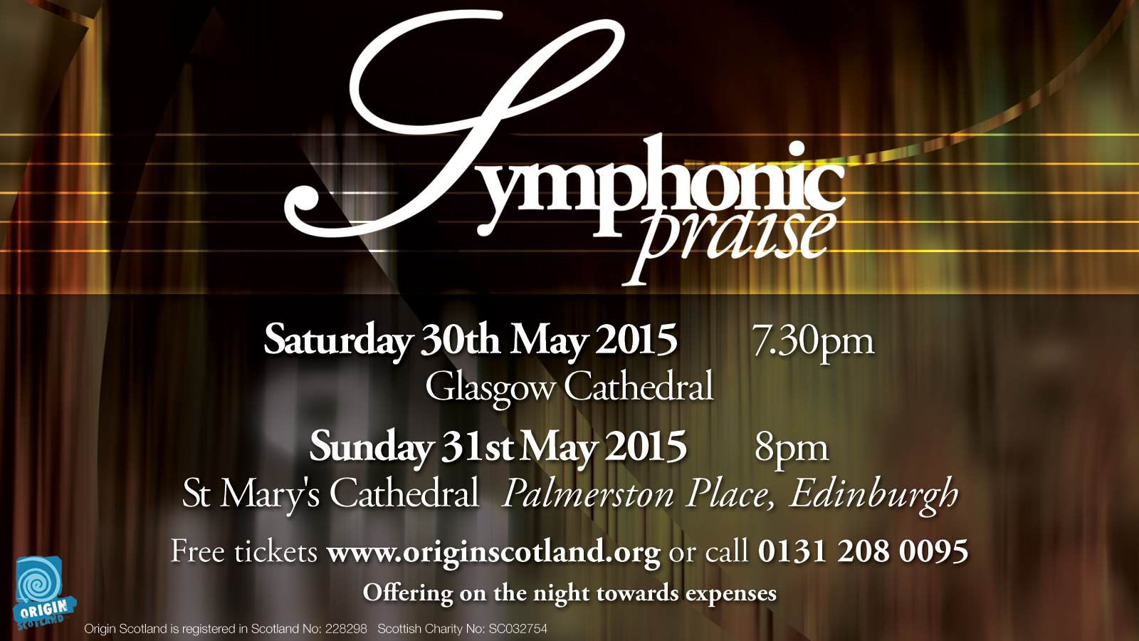 A fully symphonic concert of praise and worship in the stunning surroundings of St Mary's Episcopal cathedral in Edinburgh and Glasgow Cathedral. The event will be led by Origin's Exile Choir and Chamber Orchestra.