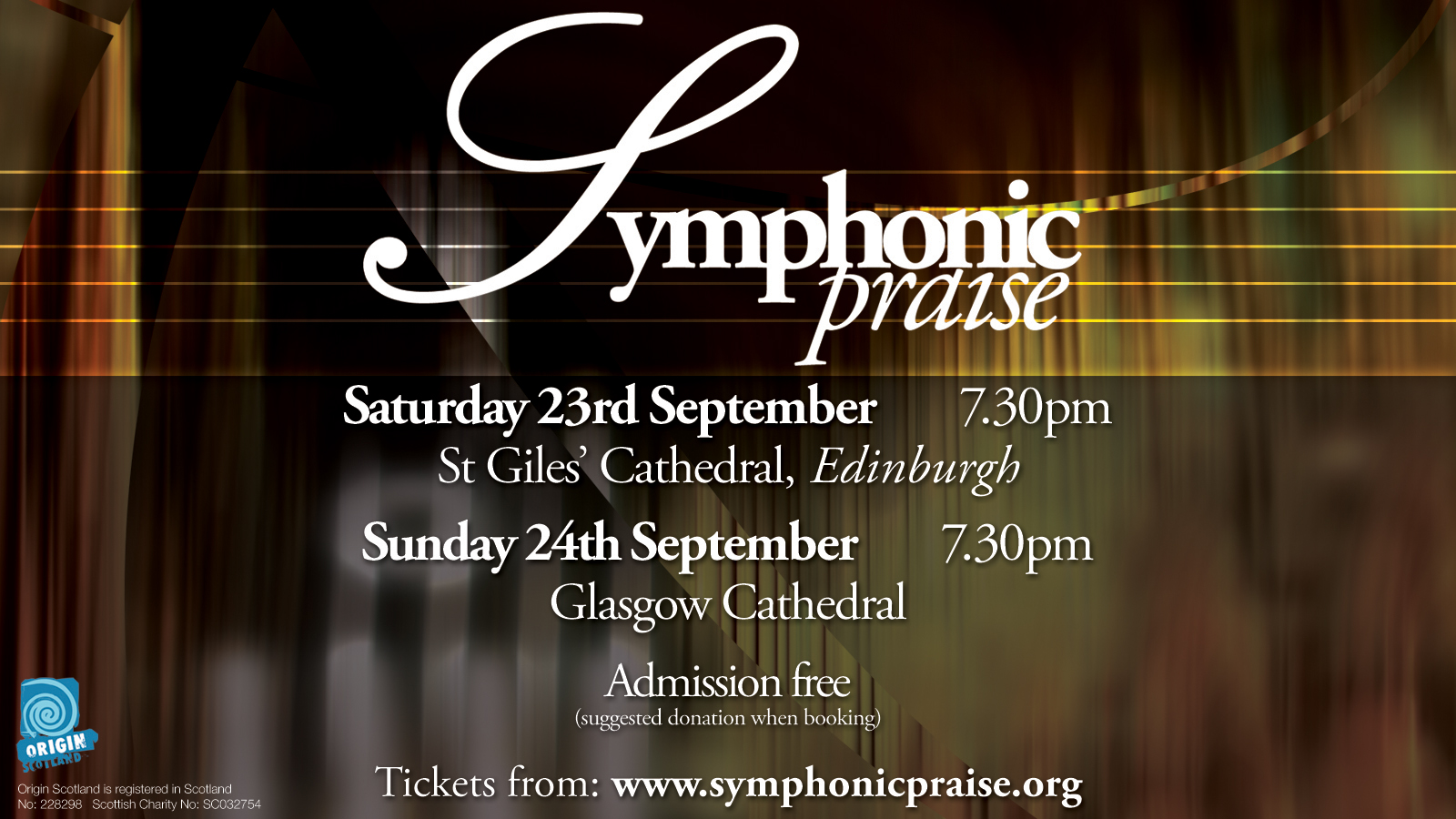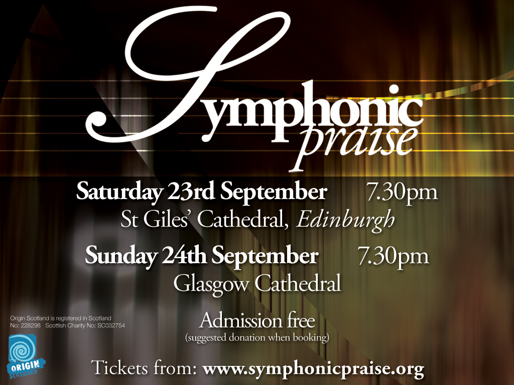 ADVANCE TICKETS ARE NOW CLOSED. You can get tickets at the door. A concert of praise and worship in the stunning surroundings of one of Scotland's most beautiful churches, led by the Origin Scotland Orchestra and Choir.