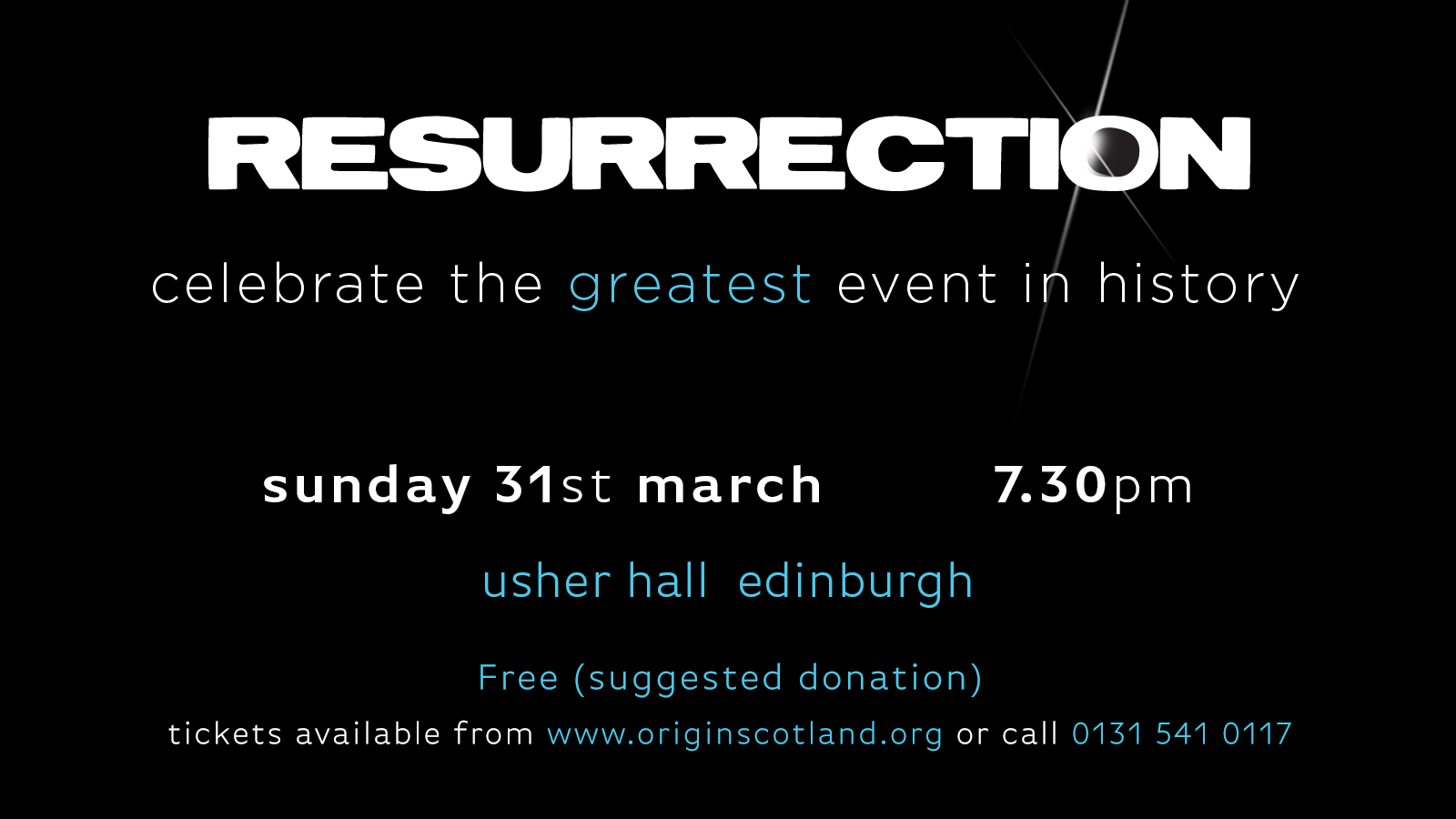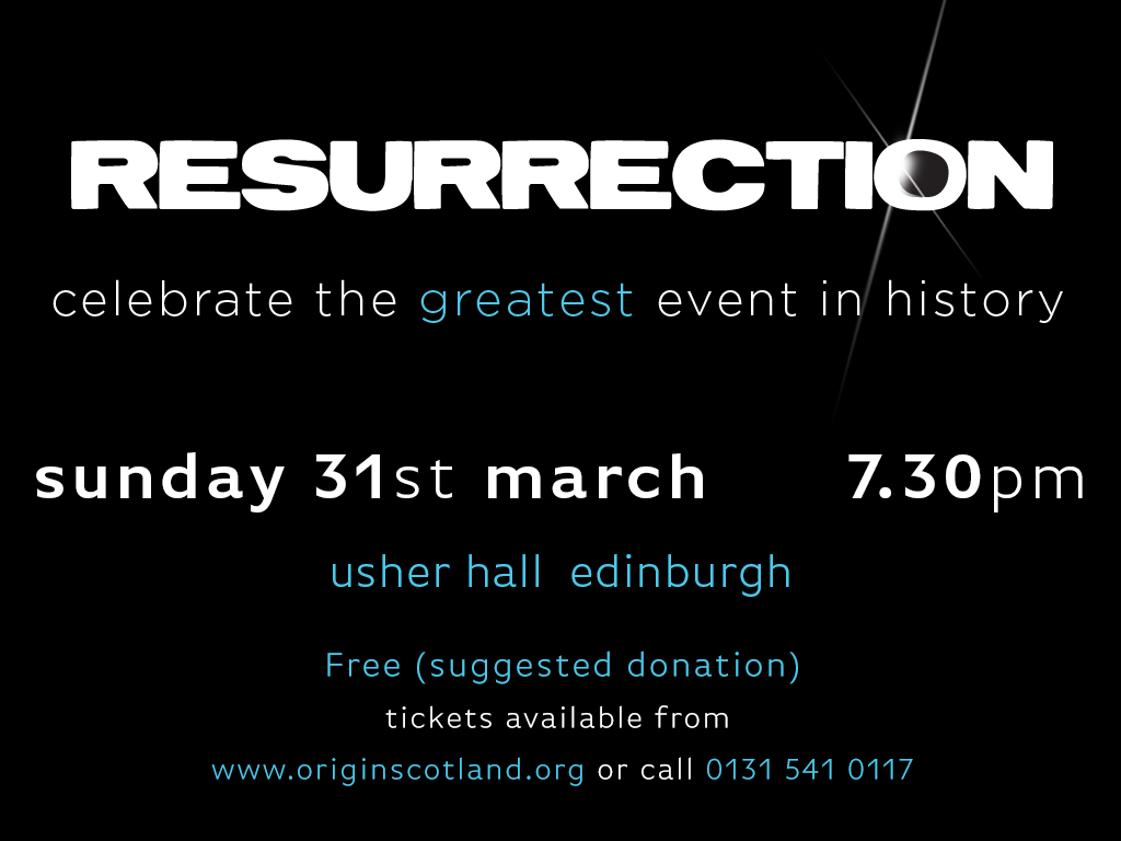 An event that has become an Easter tradition in Scotland, RESURRECTION brings together Christians from all over the central belt to celebrate the resurrection of Jesus in an evening of music and worship on Easter Sunday.