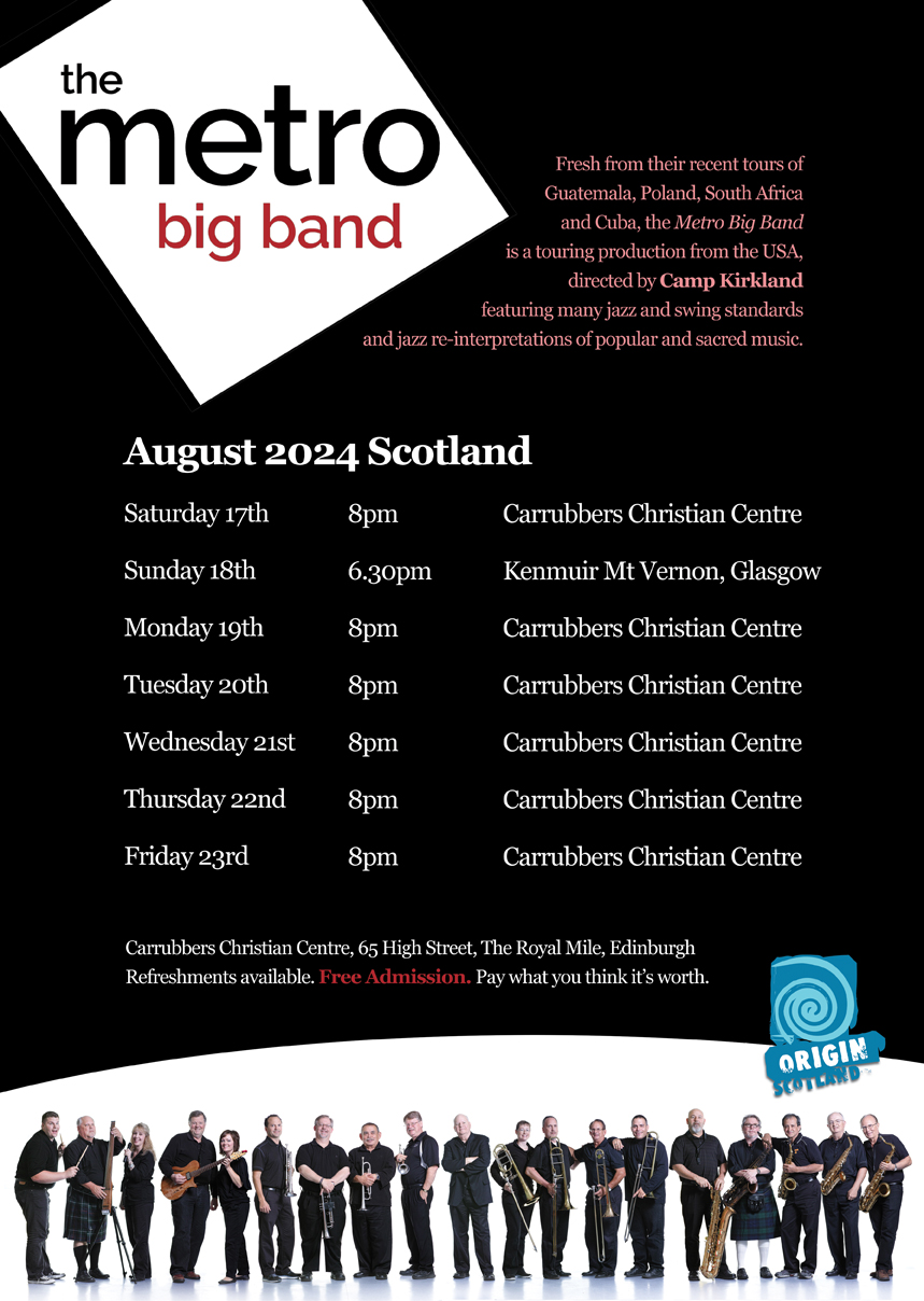 The Metro Big Band is a classic jazz big band from the USA, directed by Camp Kirkland. They have travelled extensively through Europe and North and South America. Band members are professional musicians, many in the teaching and recording industry, from all over the United States.